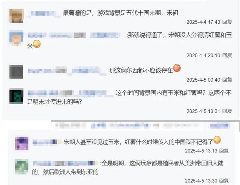 更有玩家指出,游戏的背景设定在中国历史上的五代十国末期至北宋初年,而玉米和红薯都是在明朝才传入中国的,这样的错误显得尤为突出。这一系列的问题让玩家们对游戏的文案审核产生了质疑,也引发了对游戏文化背景准确性的关注。