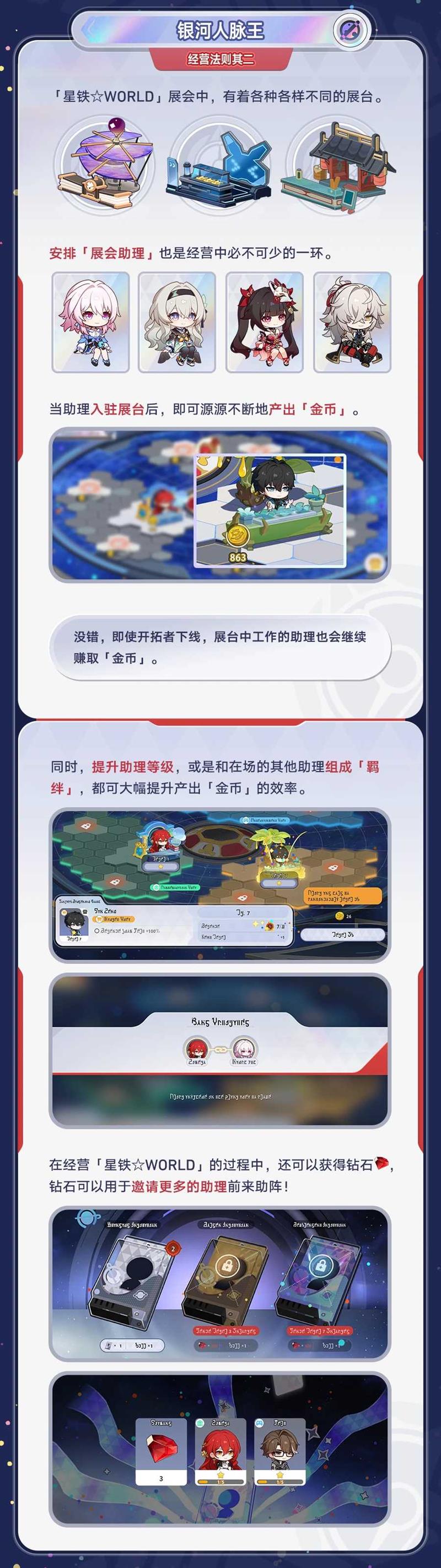 「星铁☆WORLD」的玩法围绕经营与资源管理展开。通过合理安排助理、解锁科技、完成事件,可以快速提升会场等级,解锁限定奖励。活动奖励包括四星光锥「宇宙大生意」和燃料等资源,是提升角色实力的绝佳机会。