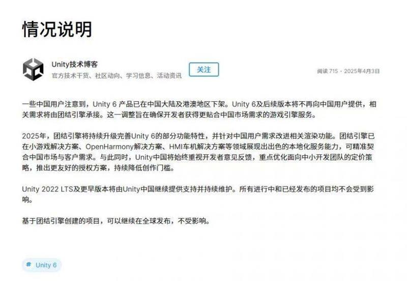 随着Unity 6及后续版本不再向中国用户提供,国内游戏和交互内容开发者正面临关键技术转型的困境。尽管所谓的“团结引擎”试图填补这一空白,但其本质仍是Unity的授权版本,不仅技术积累不足,还存在后续技术断层的风险。俄乌冲突中Unity封锁俄罗斯开发者使用权限的事件,让中国开发者们对类似的技术断供风险忧心忡忡。在中美关系持续紧张的大环境下,技术自主可控已成为不容忽视的战略需求。