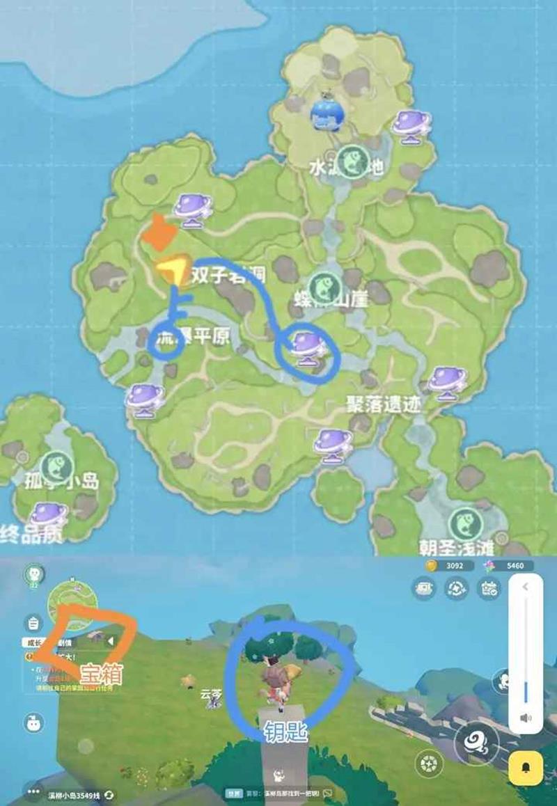 第三个宝箱:位于溪柳小岛的中心区域,可能需要使用钥匙才能打开,具体位置可能需要解开谜题或完成任务后才能发现。