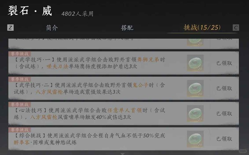 3. 八方枪武学技命中多人目标*3,效果持续时间结束后再计数,推荐鬼公子顺手做了。需携带心法磐石决。