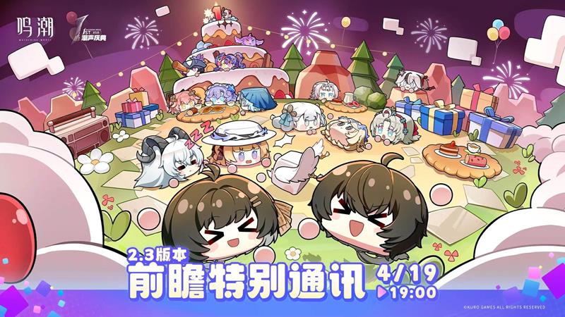 游戏鸣潮2.3版本前瞻特别通讯将于2025年4月19日19:00正式播出。本次前瞻通讯将在《鸣潮》官方直播间播出,其中会有大量关于新版本爆料内容放出。包括全新角色,活动,版本改动等等。