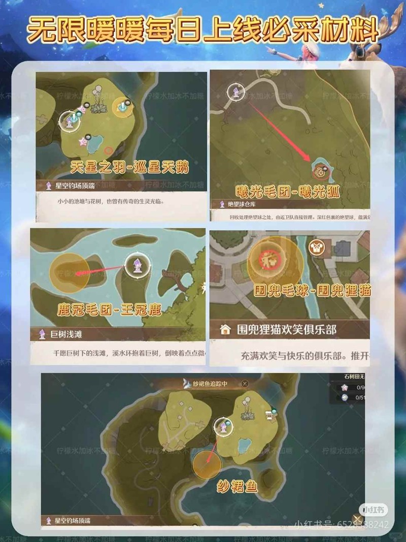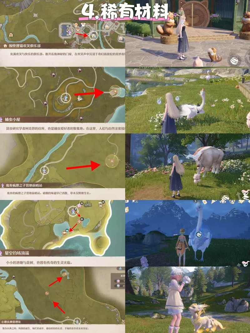 第四个稀有材料收集看个人制衣需求,这几个稀有材料24小时只能采集一次,对应点位已标记,分别是:
