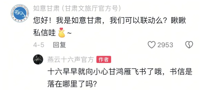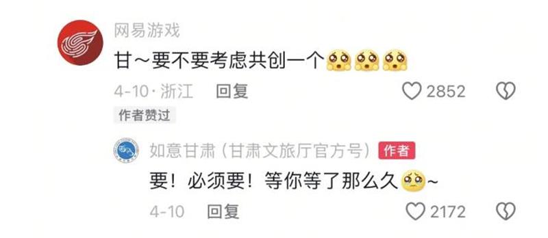 后来网易也主动在甘肃文旅下面发了联动的预热留言。