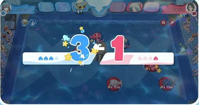 赛场对局变化莫测,场地效果也需留意。碰撞泳圈柱的小海豹会加速,并在本轮中增加攻击力;碰撞尖刺柱、尖刺墙的小海豹会受到伤害。每场比赛双方可各自选择3名选手上场,分别于场地两侧,以红蓝色区分。在每轮中,除特殊情况外,每只海豹仅可行动1次,进入新的轮次后将交换先手。击败对手小海豹,即可获得积分,满分即可获得胜利。一轮结束后,还有抽取法吉娜祝福的环节,开拓者可以根据战况选择合适的对策或为小海豹天赋技能升级。