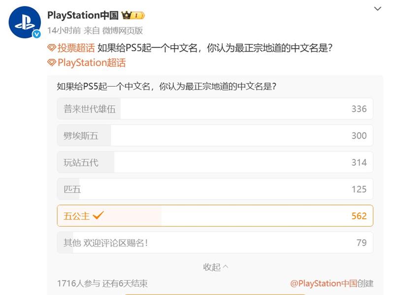 PS5作为索尼旗下的新一代游戏主机,自发布以来就凭借其强大的性能和丰富的内容吸引了大量玩家的关注。此次中文名征集活动,无疑是索尼进一步拓展中国市场、贴近中国玩家的重要举措。在征集活动中,玩家们积极参与投票,提出了各种富有创意的命名方案,其中“五公主”因其独特的谐音和趣味性,成为了目前最受欢迎的选项。