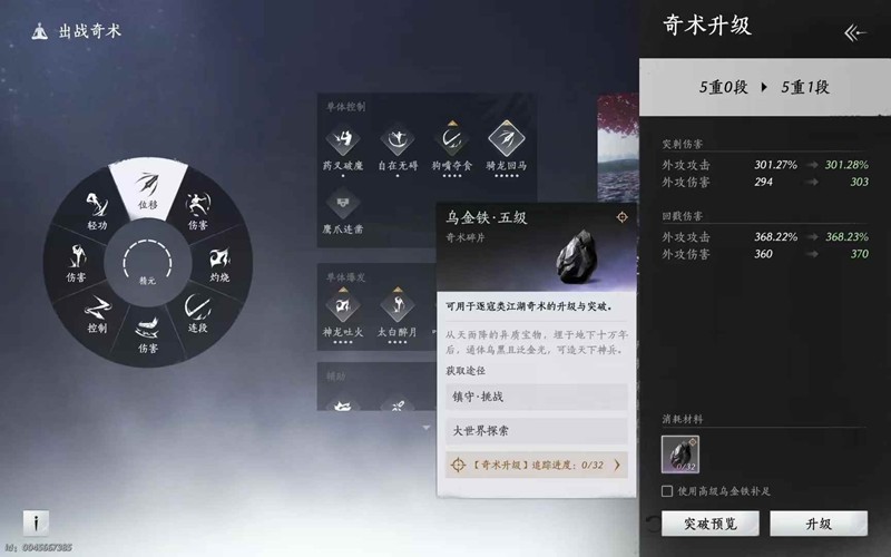 第二阶段:奇术buff叠加,剑武学(两下,不要触发纵横剑)(buff:五层流血)