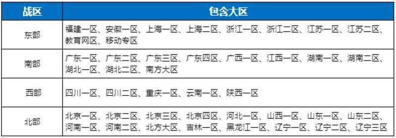 游戏目前合区分为四大战区,如果您与好友是一个大战区的即可一起游戏,具体如下图。