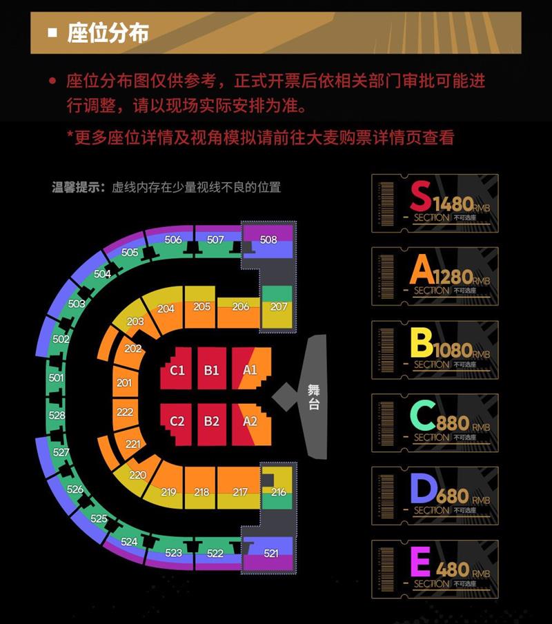 大麦售票页将对可能视线不良的区域设置独立购票按钮,并标注“可能视线不良”,方便博士们根据自身需求选择座位。此外,博士们还可以通过大麦售票页查看座位视角模拟,确保购票时对座位信息有清晰的了解。