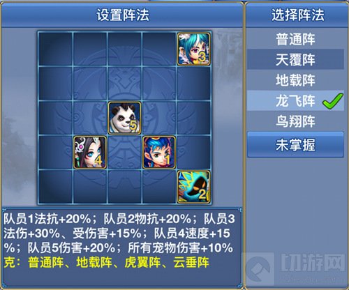 龙飞阵作为首选,能使得各位小伙伴各司其职,效果最大化。地载阵再次加强了小伙伴们的生存,在某些有难度的任务中是不错的选择。其次风扬阵也是不错的选择。