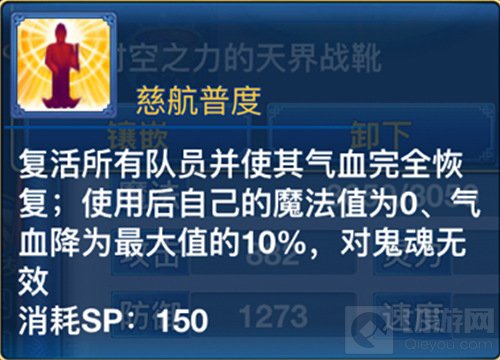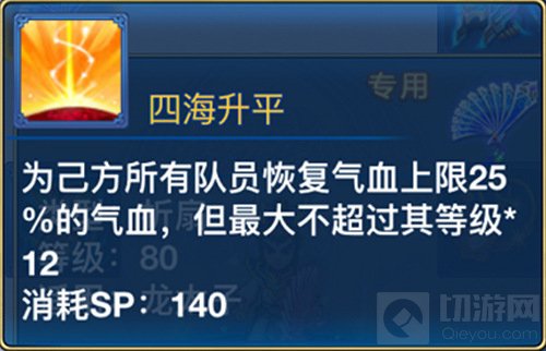特技选择:愤怒、四海升平、慈航普度、水清决、笑里藏刀、天地护法