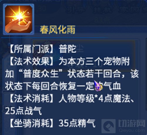 作为高速普陀,娑罗双能让你的“高速”达到极致,能够一速拉起本方倒地的封,团战中,你的封系队友最喜欢这个技能了。极乐回天,既能大量加血,也能拉人,也是强力推荐的技能。春风化雨,为本方三个宠物附加“普度众生”状态若干回合,对于现阶段PK中血耐宝宝居多的情况,续航成了重要考虑条件,这个技能也日益火起来。