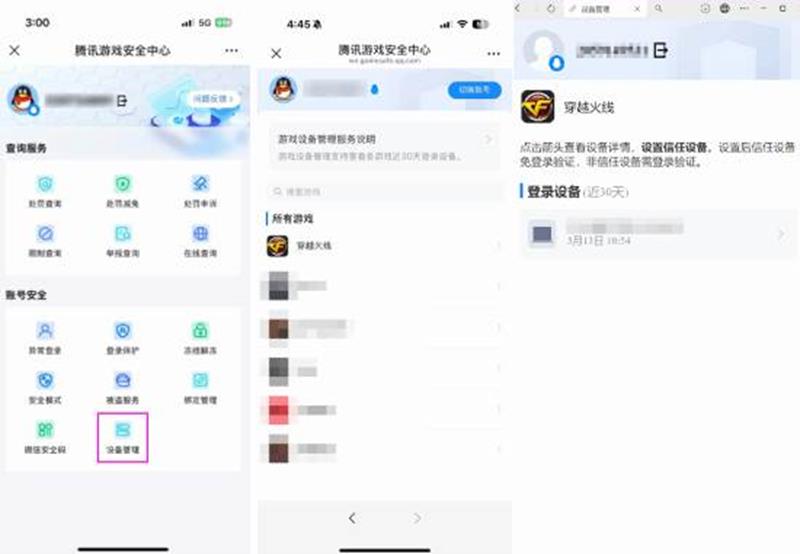 需要的玩家可以在腾讯游戏安全中心公众号中,选择自助服务-账号安全-设备管理-穿越火线-设备列表-点击详情设置信任设备,即可完成设备绑定,完成绑定后,就可以开启火线设备锁功能了!