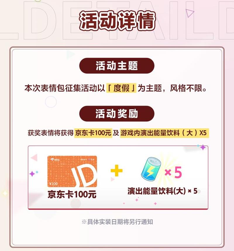 获奖的表情创作者将获得价值100元的京东卡以及游戏内演出能量饮料(大)x5。此外,最终被选中的表情还将由官方进行调整,并实装进游戏中,让所有玩家都能使用到这些充满创意的表情。这不仅是对创作者的认可,也是对《初音未来:缤纷舞台》社区文化的一种丰富。