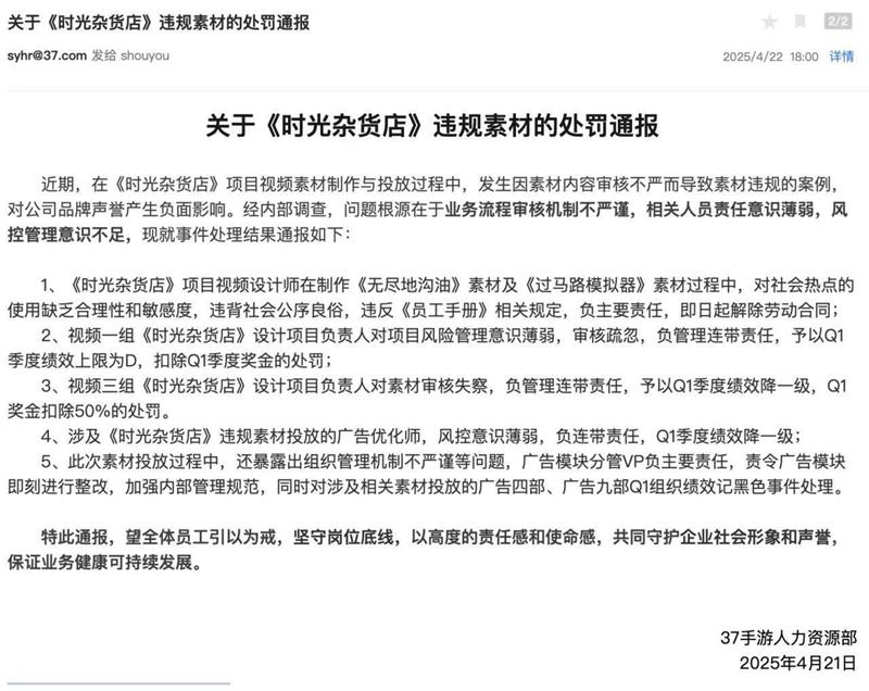 《时光杂货店》近期因广告素材投放问题引发了广泛关注。在游戏的推广过程中,部分视频广告素材因内容不当被认定为违规,相关责任人及团队受到了严肃处理,这一事件也引发了对游戏广告内容审核机制的深入讨论。