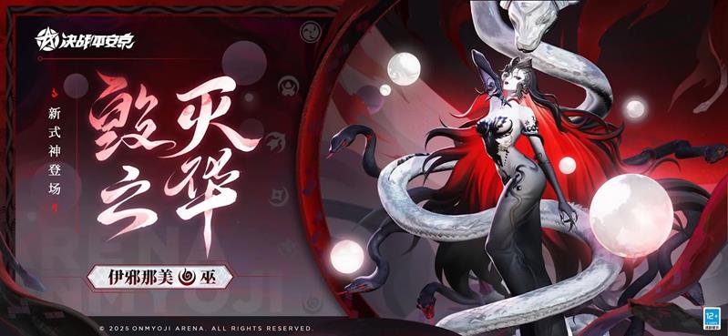 新式神伊邪那美正式登场,她拥有独特的技能组合。特质“灭世之舞”使她可以在晴明井中化身为陨石高速移动,对敌人造成范围伤害。一技能“赤潮归墟”能释放虚无之海的余波,命中敌人后可进行位移;二技能“终焉血楔”可对指定区域造成减速和定身效果;三技能“千引魂堕”通过积攒毁灭能量,持续造成伤害并回复生命值;终极技能“冥湮柩牢”则能召唤巨蛇,击退敌人并生成墙体眩晕对手。伊邪那美的加入为游戏的战斗策略带来了新的变化。