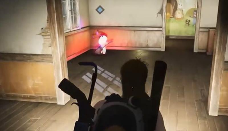 进入房子后左转,可以看到一个梯子,爬到二楼,二楼会有一个小纸人。