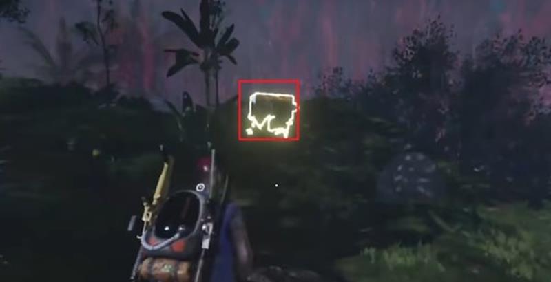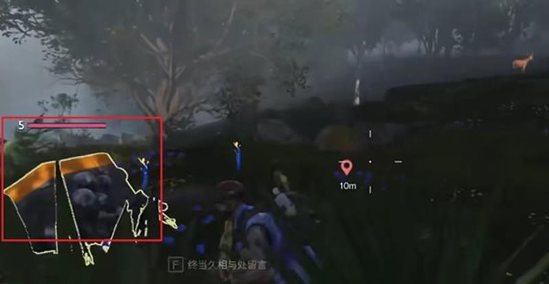 第六个宝箱在树林中,周围环境复杂,玩家需要耐心寻找。