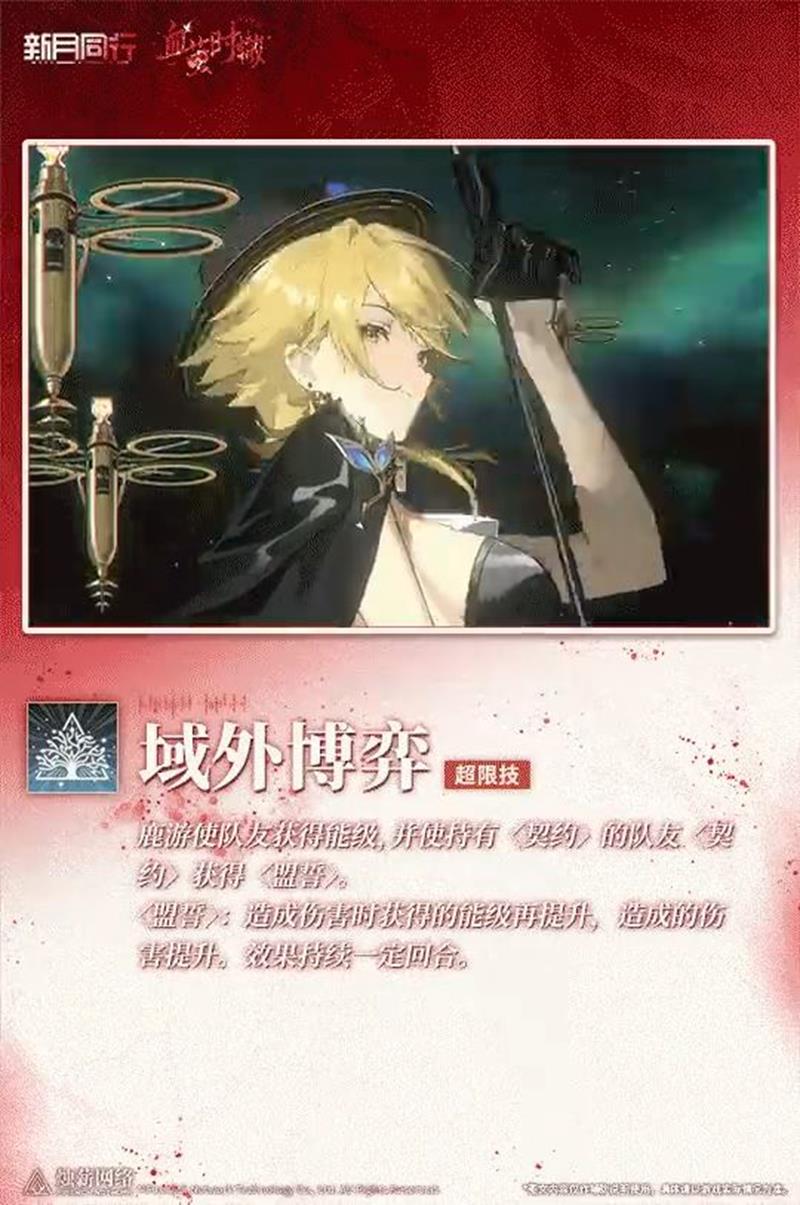 鹿游的 支援技域外博弈 可提升全体友方攻击力并使其获得能级。