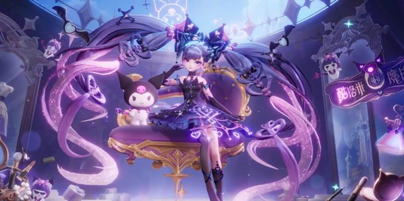 在本款皮肤中,安琪拉化身酷洛米魔法屋特立独行的妆造师,帮你找到真实的自己。神秘低调的紫色双马尾,结合粉闪挑染和爱心编发,是她甜酷的气质写照。