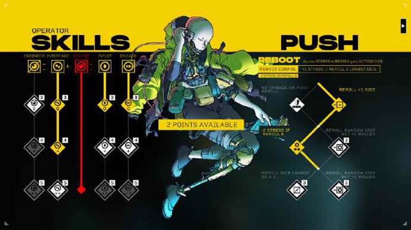 你是一个叫「梦游体」的仿生人,虽然身体是机械,但意识其实模拟自某位已经逝去的人类。主角依然被分为三种职业,我选择了「采矿工」,它装备精良,能够承受繁重的体力劳动,而且能很好地适应高危环境,但在面对更需求精度和技术性的工作时却显得力不从心。本作中每种职业的优势和劣势与前作略有不同,主要是为了让《深空梦里人 2》的掷骰玩法变得更具不确定性。