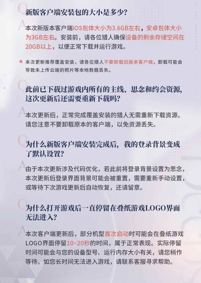 卸载旧版本可能会导致未上传云端的照片等本地数据丢失,请各位猎人务必留意「不要卸载」旧版本客户端。