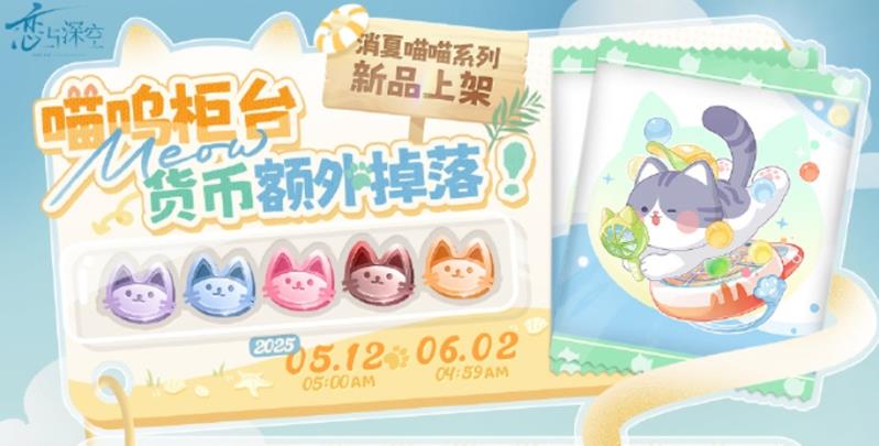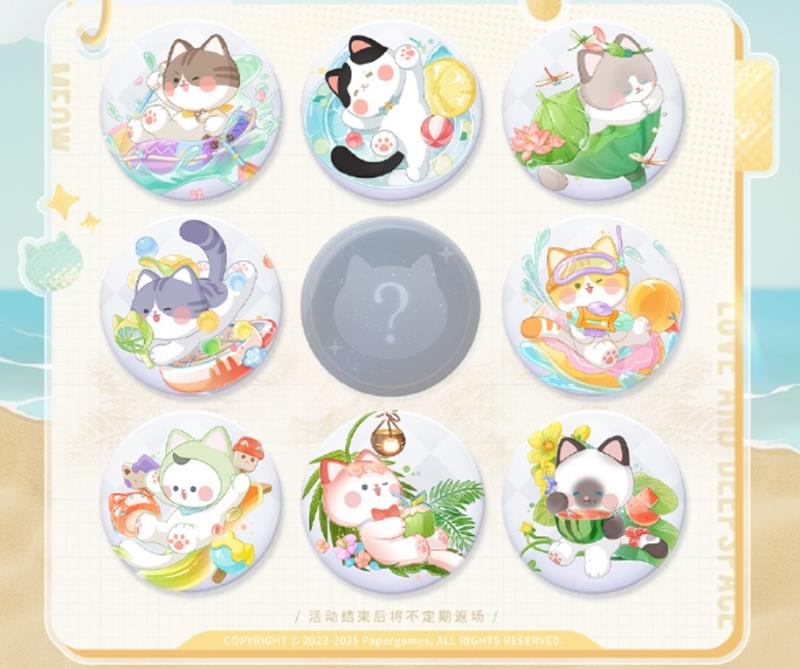 全新「消夏喵喵」系列喵呜徽章限时上新,收集额外掉落的限定喵呜币来抽取吧!