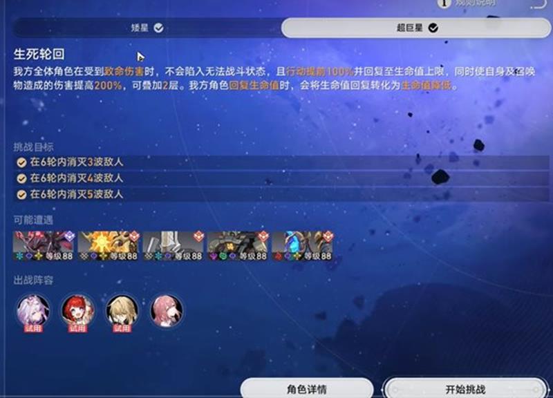 掌握关卡机制和合理搭配阵容是通关星芒启明第二天生死轮回的关键。以上就是崩坏星穹铁道星芒启明第二天生死轮回的详细攻略。如果这篇攻略对你有帮助,还请点个收藏关注一下切游网,各位读者的支持就是我们持续更新的最大动力。