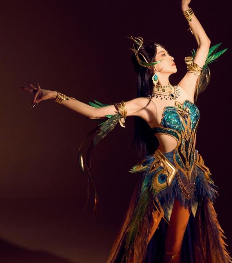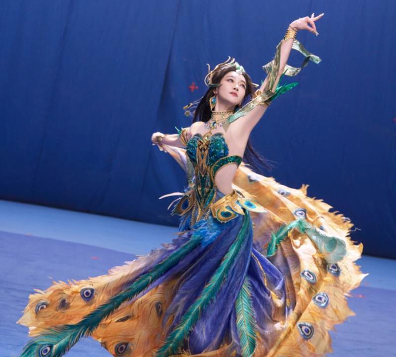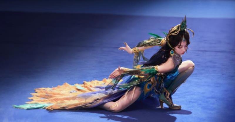 在花絮视频中,宋茜身着【辉羽雀灵-初翊】至臻外观,完美诠释了孔雀的灵动与优雅。她与杨丽萍舞团的青年舞者普一凡共同演绎孔雀舞,展现了雀灵降世的绝美瞬间。