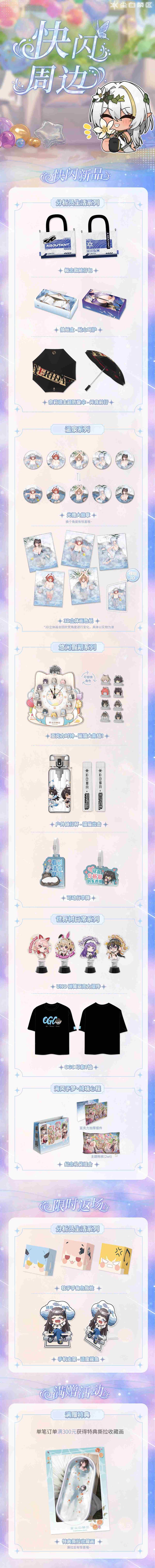 活动将于2025年5月1日至5月5日举行,每日开放时间为上午10点至晚上9点。地点位于广东省广州市天河区天河路299号时尚天河商业广场4号口B1层。活动现场将有众多《尘白禁区》的周边产品贩售,包括分析员生活系列的概念款随行包、抽纸盒,温泉系列的光栅大徽章,悠闲假期系列的亚克力时钟和户外随行杯,以及世界树日常系列的UNO弹簧亚克力摆件和OGC印象T恤等。此外,还有专为本次快闪活动打造的“海风予梦·绮境心程”纪念礼袋组合。玩家在活动现场消费满300元,还将获赠特典撕拉收藏画,数量有限,先到先得。
