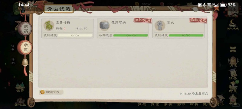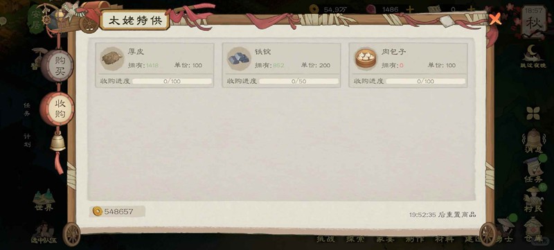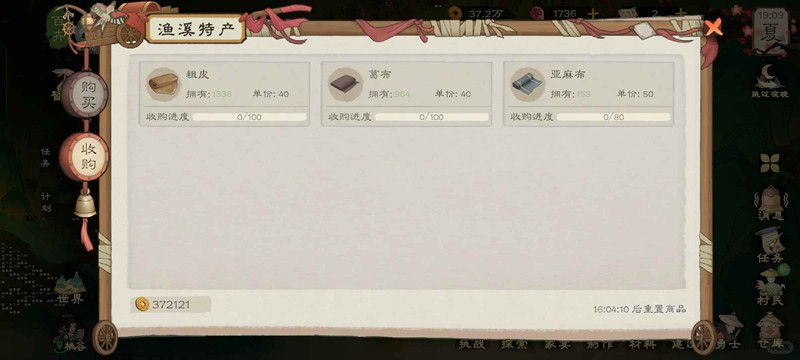 出没于桃谷的城门口,会有消息提醒商人到来。随谷主规模等级提升,货郎收购物品增加,总共收购15种商品。每天可以免费刷新三次,如图2所示。