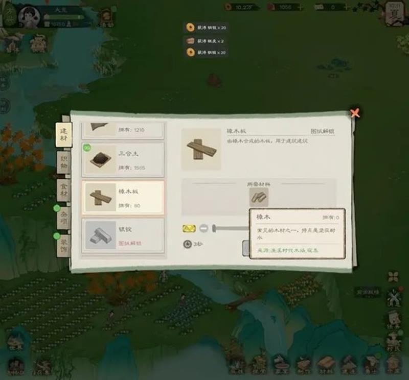 除了伐木场产出外,夜市与渔村小摊也是获取樟木的重要渠道。解锁夜市后,玩家需要在旁边建造渔村小摊,才能通过此渠道购买樟木。每日购买上限为10000个樟木,同样在凌晨5点重置。由于夜市渠道的单日获取量更高,建议玩家优先完成购买。
