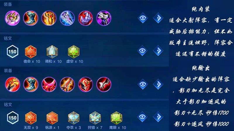 铭文方面,推荐使用10异变、10隐匿、10鹰眼。这套铭文主打物理穿透与攻击力,辅以少量攻速与移速加成,既保证了暃的技能伤害,又略微提升了普攻手感与游走能力。
