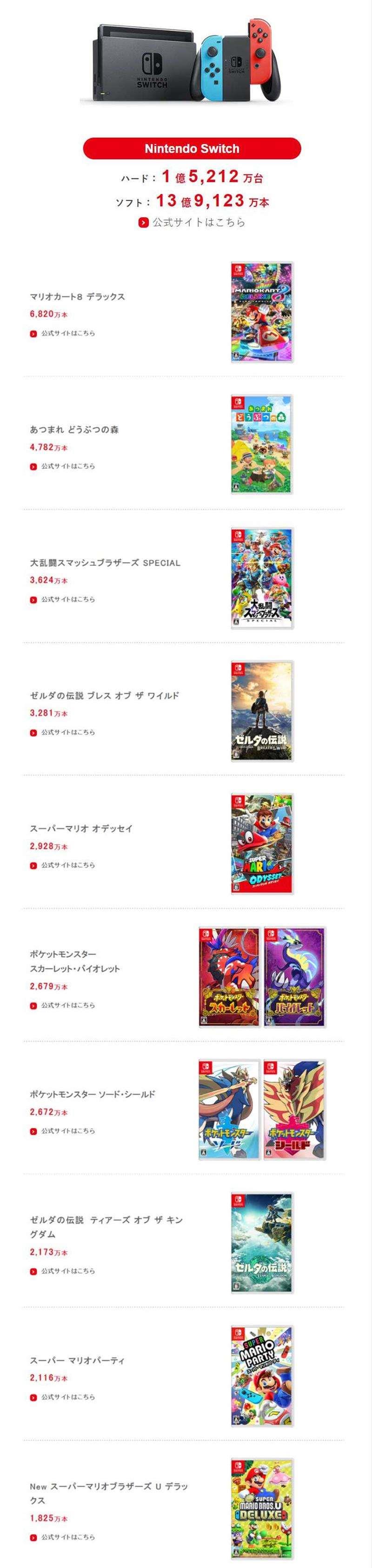 近日任天堂新一轮财报公布,截止至2025年3月31日,Switch全球累计销量达到1亿5212万台,超越NDS成为任天堂史上最畅销主机。Switch平台游戏总销量突破13亿9123万份。