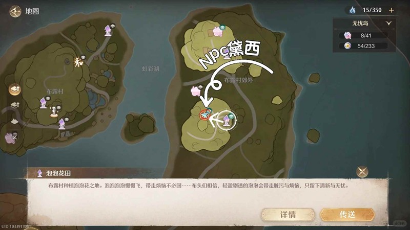 通关黛西的搭配挑战【天空的花园】,黛西位置:布露村郊外“泡泡花田”传送点左侧。