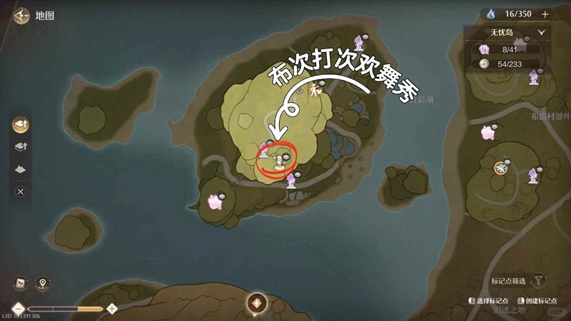 在【布次打次欢舞秀】,与其他玩家合影一次。位置可见图。制作【温柔训导】▪️完成季节新风物第二章获得设计图纸。▪️制作材料:在虹彩留影册中收录10张照片▪️留影册攻略后续会另外更新在主页
