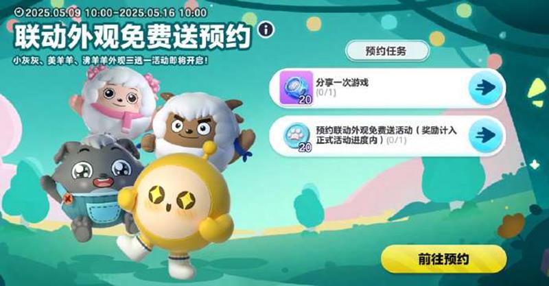 蛋仔们可以免费领取三款联动外观——小灰灰、美羊羊、沸羊羊,外观三选一。完成活动预约后,还能获得潮流纤维和羊狼币,羊狼币可加速获取外观的进度。在活动期间完成预约,即可提前获得大量羊狼币。