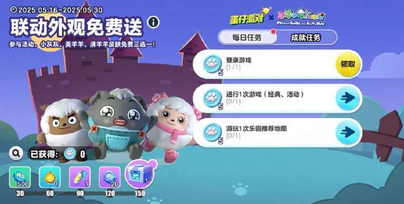 任务获取:5月16日00:00-5月30日期间,每日完成简单任务获取羊狼币,累计达到指定数量即可免费领取萌趣动作<委屈>和“联动外观三选一宝箱。、