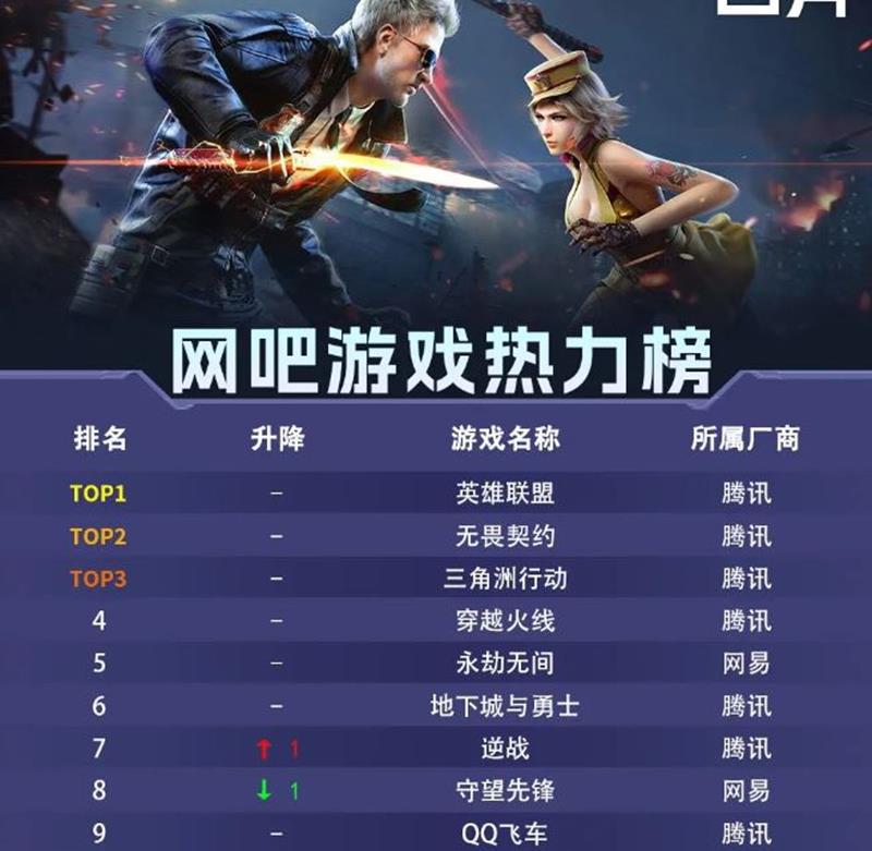 25年4月网吧游戏热力榜公布,值得一提的是这个月腾讯两款新游新入榜单,包括之前备受期待的穿越火线 怀旧模式等,炉石传说也开始发力,我们来一起看看!