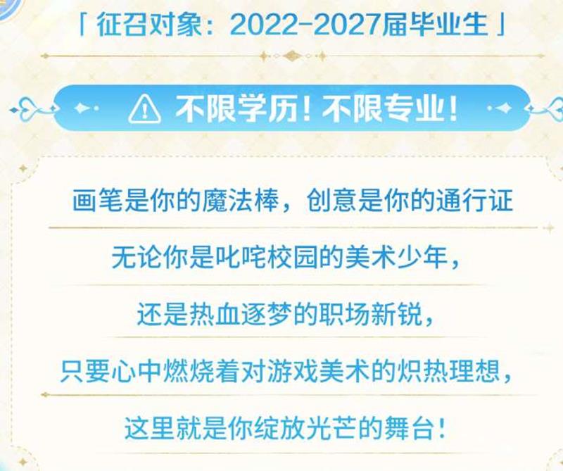 王者荣耀美术设计赛区的报名通道已经开启,此次大赛由《王者荣耀》美术资深团队全程指导,面向全球热爱游戏美术的年轻创作者。大赛不限学历和专业,只要你是2022年1月1日至2027年12月31日之间毕业的创作者,都可以免费参与。