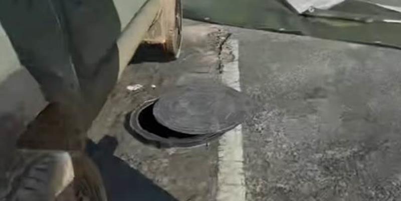 第七个井盖顺着集装箱一直往前走,在大马路中间就能看到。