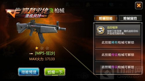 因为MP5狂沙是初始装备,因此品质和属性在冲锋枪中是最低的。不过游戏初期的难度也不高,MP5完全可以胜任。