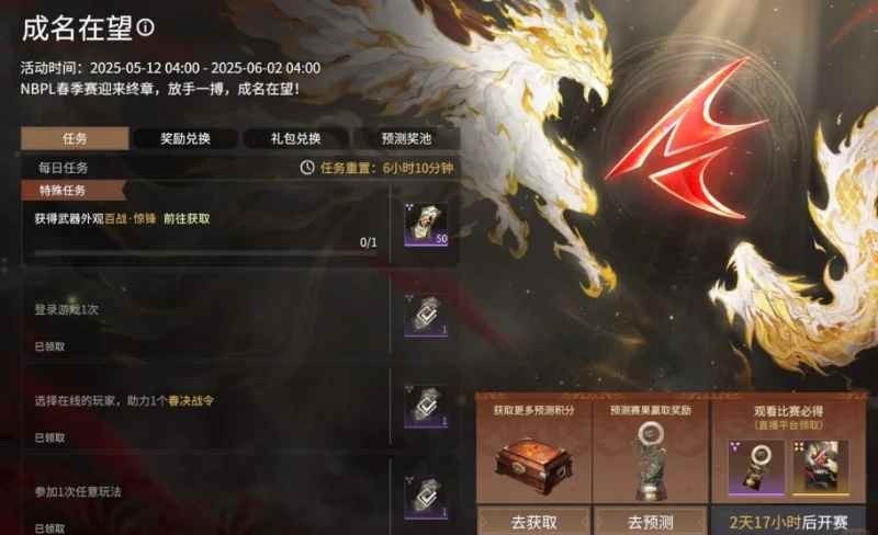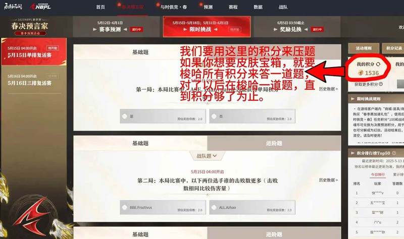 如果你想要皮肤礼包,就要梭哈积分来搏一搏,失败了也没关系,注意始终给自己留100积分用来过成名在望的不论对错预测任务。