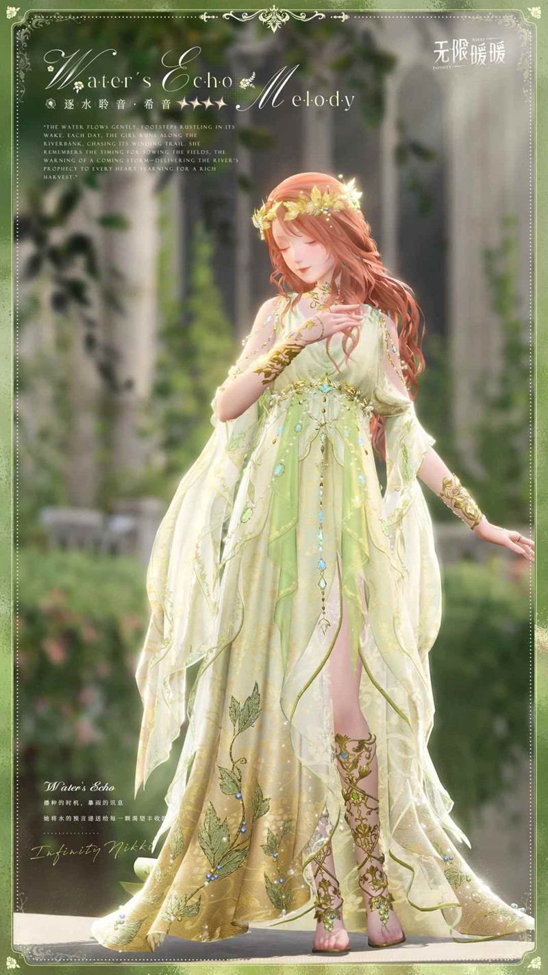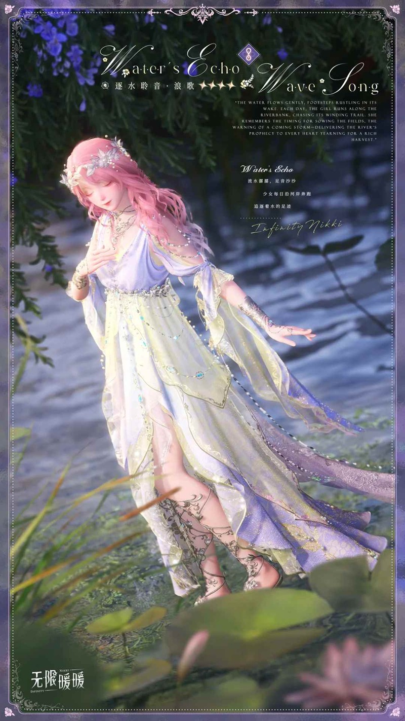 「逐水聆音」进化后为套装「逐水聆音·浪歌」。套装焕新完成后可获得「逐水聆音·希音」。