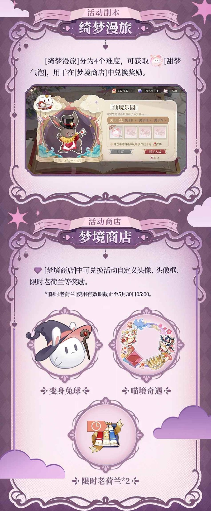 ► [绮梦漫旅]&[梦境商店]:通过[绮梦漫旅]获得道具[甜梦气泡],可在[梦境商店]中消耗获取奖励。