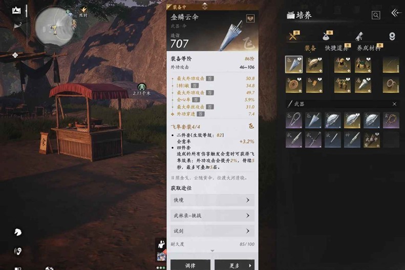 如图,主播直接调的调出这种,没有用较为大众的先调烂装备那种方法,一气呵成调出全金荐的伞。后面也是这种方法调的,我感觉还不错而且畅快。