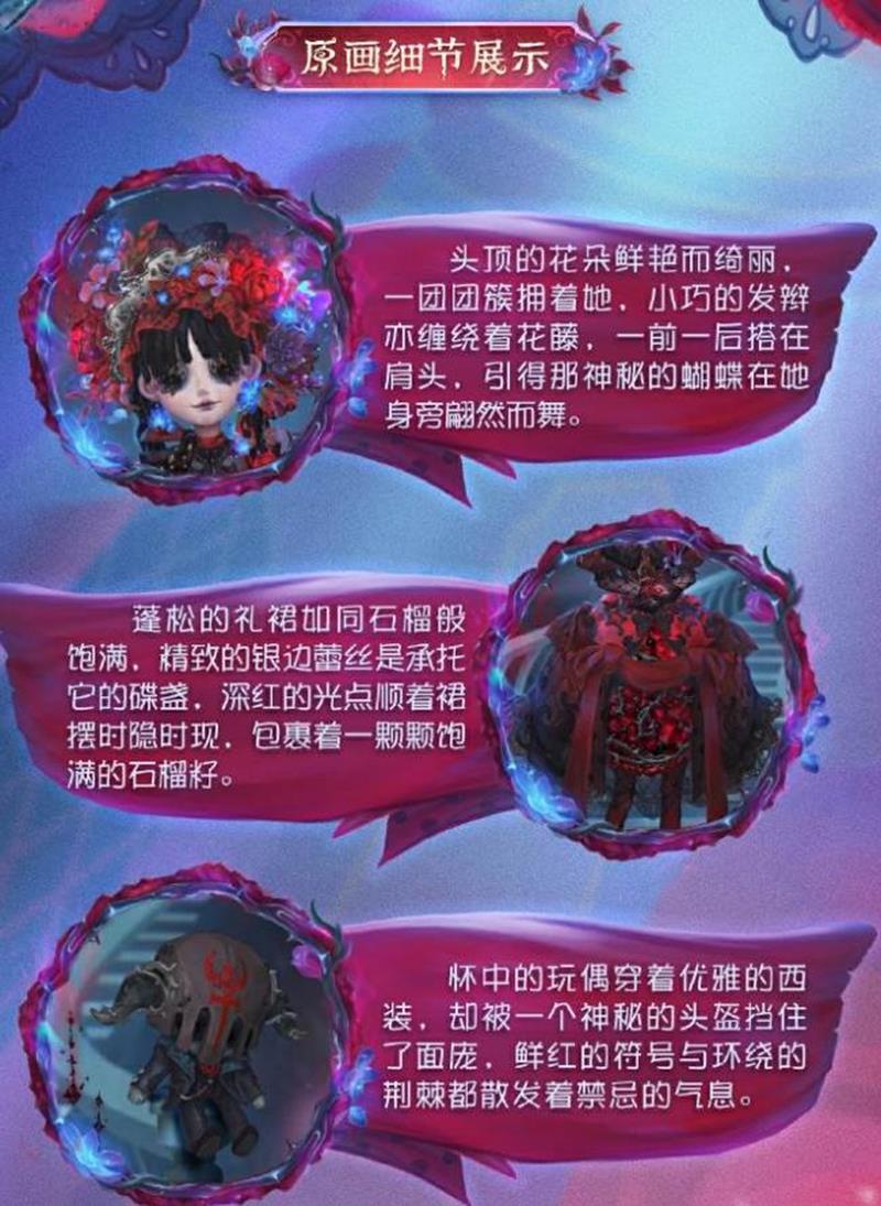 第五人格官方于近日正式公布了小女孩稀世时装“石榴碟小姐”的设计思路与背景故事。这款时装作为第三十八赛季·精华1的核心内容之一,已经于2025年4月30日维护后正式上线。