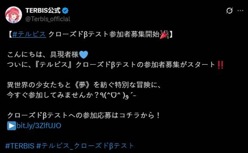 韩国游戏开发商网禅(Webzen)旗下的二次元手游《TERBIS》(テルビス)已于2025年5月22日开启了日本地区的招募活动。