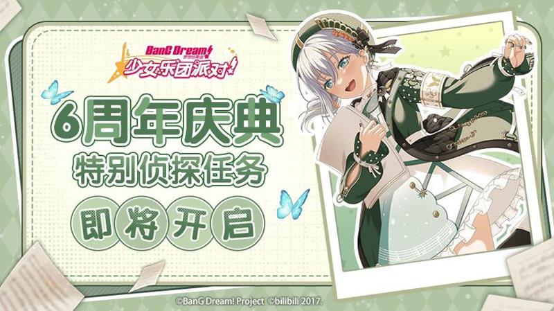 为庆祝《BanG Dream! 少女乐团派对!》简中服六周年,官方宣布将于5月26日维护后推出特别侦探任务活动。本次活动将持续至6月15日,玩家们可以通过完成每日任务获得丰厚奖励。