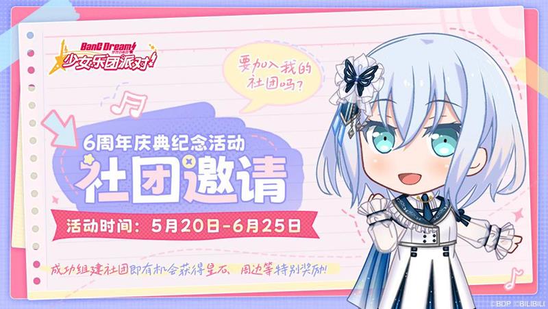 《BanG Dream! 少女乐团派对!》即将迎来六周年庆典,官方特别准备了"成立社团"主题活动。从5月20日22:00开始,直到6月25日23:59,玩家们可以组建自己的音乐社团,与好友一起享受游戏乐趣。